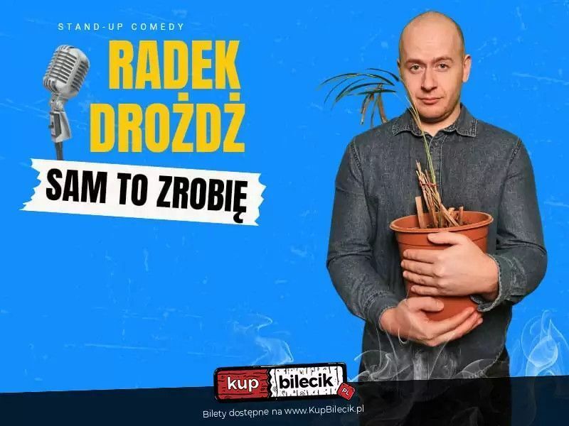 Radek Drożdż, aktor, jak go zobaczycie to pomyślicie "skądś go kojarzę". Pierwszą rolę miał w "Klanie", chciał pomóc Feliksowi, ten go nie posłuchał i spadł ze schodów. Pierwsze słowa Radka na ekranie "Panie Feliksie, sznurówka". W "Na dobre i na złe" oszukał tatę, tata oszustwo mu wybaczył i wyciągnął go z więzienia, po czym on znowu oszukał tatę. Myślał, że jego kariera rozkwitnie po roli sierżanta Drużbackiego w trzecim sezonie Belfra, stało się inaczej. Ludzie zaczęli go rozpoznawać, bo jeździ Oplem. Po tych sukcesach w showbiznesie zapraszam Was na mój pierwszy solowy program "Sam to zrobię".